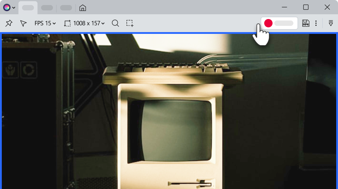 Position Honeycam where you want to record, then simply press the Record, Stop, and Save buttons. Easily and quickly capture the important moments as your animation.